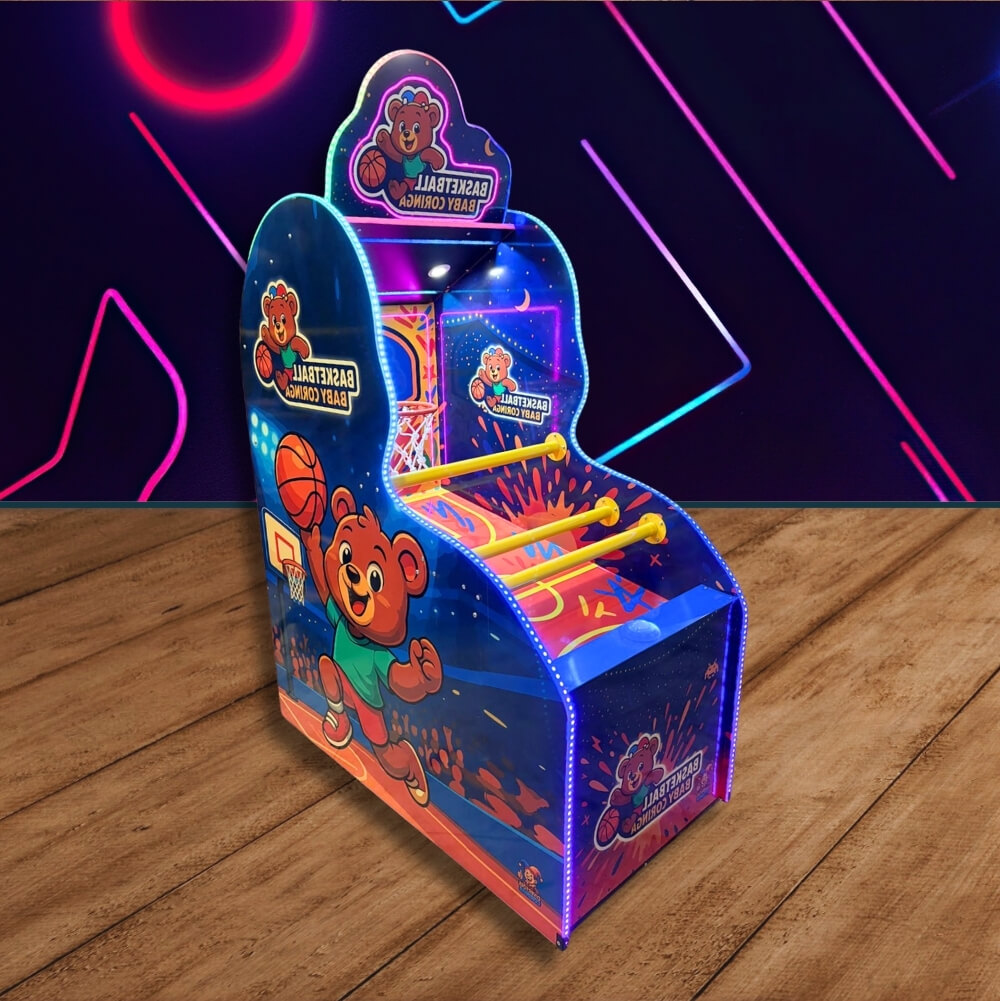 O Basquete Eletrônico Baby Urso é a atração perfeita para o público infantil, trazendo diversão e encanto para buffets, shoppings e espaços de lazer. Sua temática adorável de ursinhos é um convite irresistível para os pequenos jogadores.